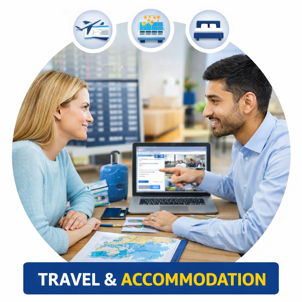 Flight booking, hostel arrangements & local support.